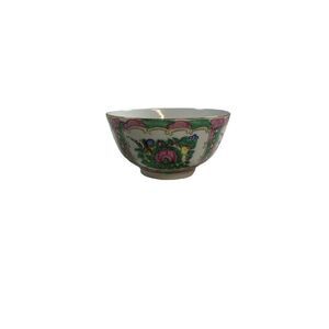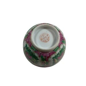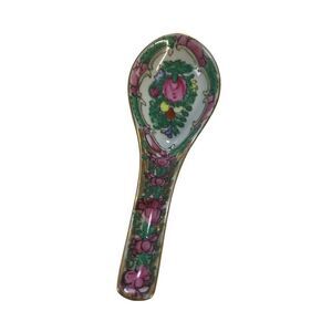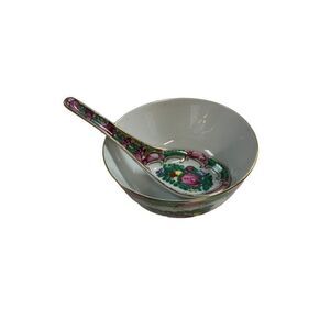 Vintage Y.T. Hong Kong Porcelain Hand Painted Rose Medallion Bowl W/ Soup Spoon