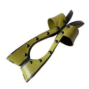 Vintage YVES SAINT LAURENT Green Leather Studded Wooden Slides Sandals Sz.10