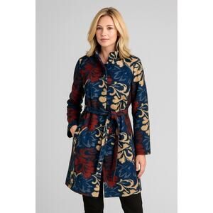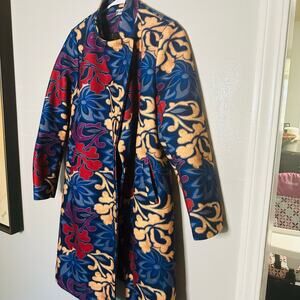 Vintage Floral Blue Tan Red with Front Pocket Blazer Long Jacket Size Large
