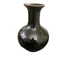 Vintage Yamasan Japan Black Ceramic Vase With Gold Peacock Design
