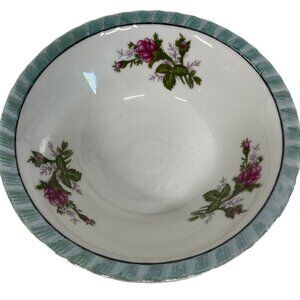 This set of vintage Yamatsu Japan bowls features a charming floral design with a green-blue rim. Ideal for collectors or everyday use.