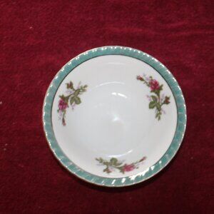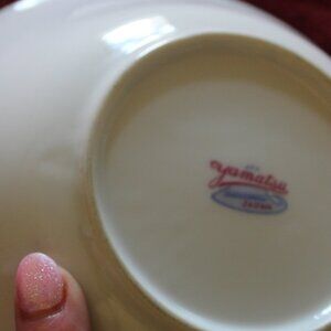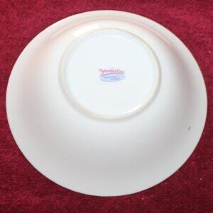 Vintage Yamatsu Japan porcelain bowl, floral design with blue lusterware rim