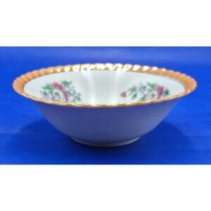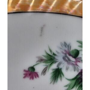 Vintage Yamatsu Purple Violets Peach Luster Porcelain Bowl Ruffled 7x2.5" Japan