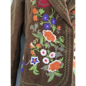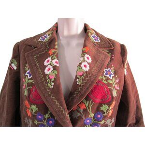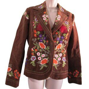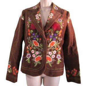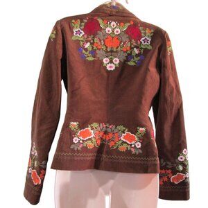 Vintage Yank Americano Embroidered Brown Velvet Western BoHo Jacket Medium GUC