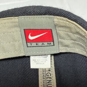 Brand is Team Nike Genuine Merchandise. 15% wool blend fabric with white logo. Adjustable hook and loop back strap.