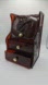 Clean amber tone, crisp reliefs, functional music box, mirror door is intact but does not lift open, see picture.