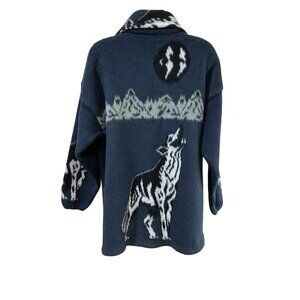 Vintage Yarina Wool Jacket With Wolf Design Full-Zip Closure Medium