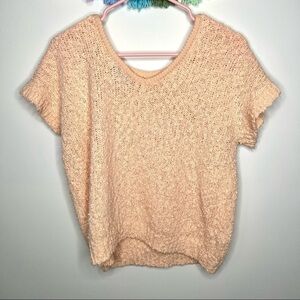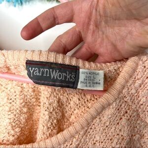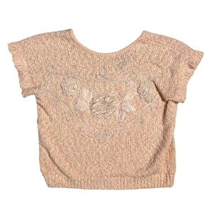 Title: Vintage Yarn Works Knit Pastel Peach Yarn Works Short Sleeve Floral Detailed Sweater Size Large
