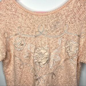 Vintage Yarn Works Pastel Peach Yarn Works Short Sleeve Floral Detailed Sweater