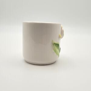 Features a dimensional 3D flower and leaf motif in glossy yellow glaze