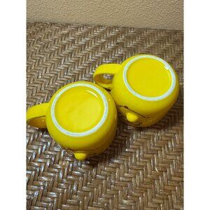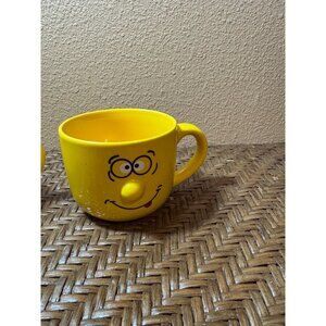Vintage Yellow 3D Smiley Face Ceramic Mug Set Of 2