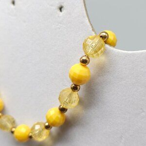 Vintage Yellow Acrylic Beaded Necklace Faceted Gold-Toned Accents 15" Length