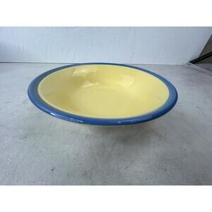 This vintage round ceramic bowl from Japan is a must-have for collectors and enthusiasts. The bowl features a beautiful yellow and blue Market Square color stones pattern that is undeniably eye-catching. Its 1.75-inch height and 7-inch width make it the perfect size for serving your favorite dishes or displaying it as a decorative piece.