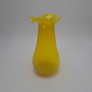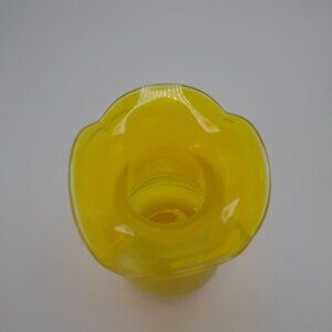 Vintage Yellow Blown Glass Vase With Ruffled Edge
