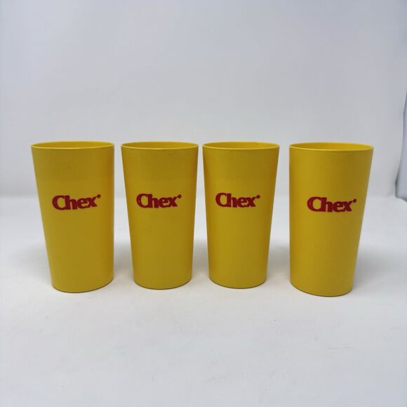 Vintage Yellow CHEX Advertising Plastic Cups Tumblers Lot of 4 Retro Food Snacks
