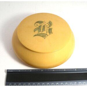 Vintage Yellow Celluloid Vanity Powder Jar/Trinket Box W/ Monogrammed Lid *Rare*