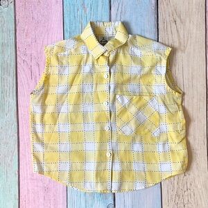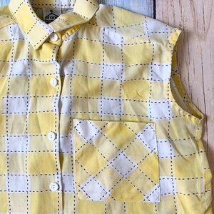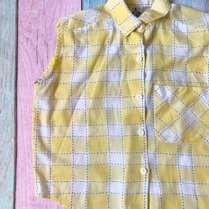 Vintage Yellow Checkered Sleeveless button down Shirt