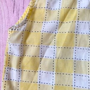 Brighten up your wardrobe with this stylish yellow checkered sleeveless shirt. Perfect for any casual outing. No size tag would fit around a medium. Lightweight and a little see-through cotton fabric with no stretch, it is pretty flowing. All buttons are functional. No stains or rips.