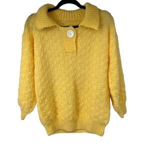 Vintage Yellow Collared Single Button Closure Pullover Sweater Women’s