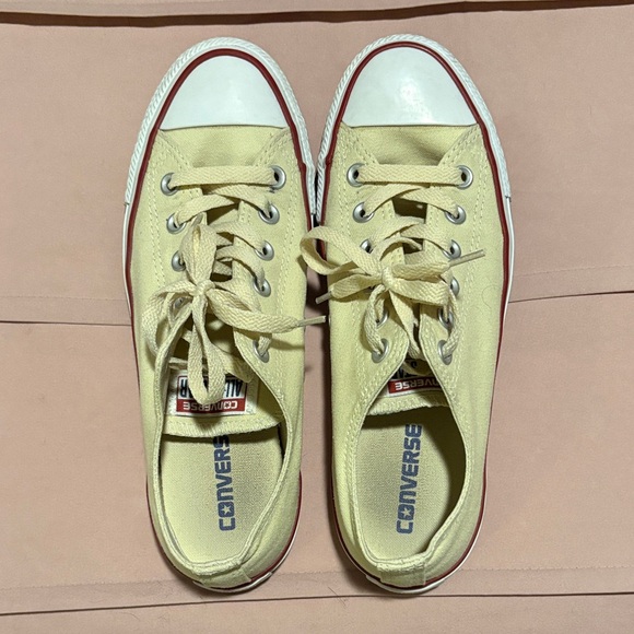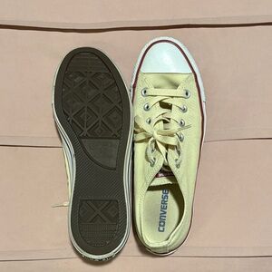 Light yellow canvas with white toe caps. Iconic Converse logo on insole!