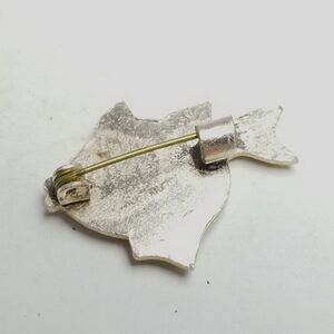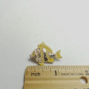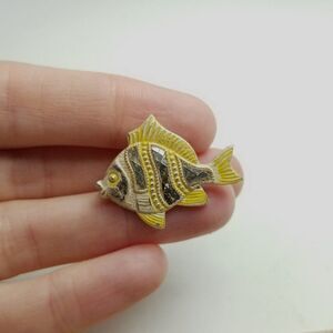 Vintage Yellow Enamel and Silver Tone Fish Shaped Brooch, Ocean Life Lapel Pin