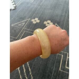 Vintage Yellow Faux Jade Lucite Bangle Bracelet