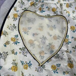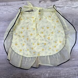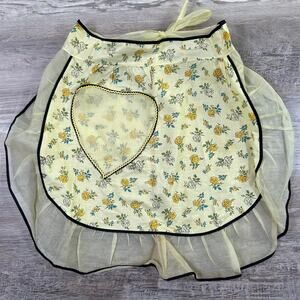Vintage Yellow Floral Apron Heart Pocket Sheer Trim Cottagecore Hostess