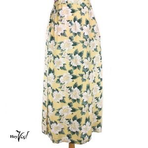Vintage Yellow Floral Rayon Skirt 34" Long with Side Slits Size Medium - Hey Viv