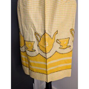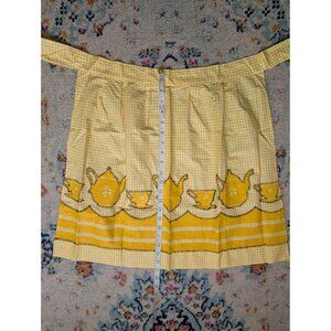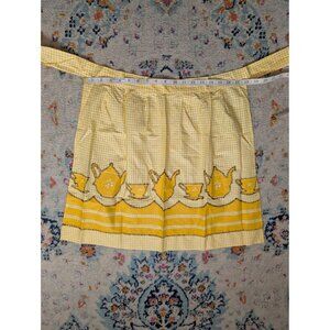 Vintage Yellow Gingham Half Apron With Teapot Embroidery Design