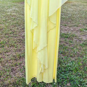 Vintage Yellow Goddess Long Dress with Chiffon Drape and Waist Tie - X-Small?