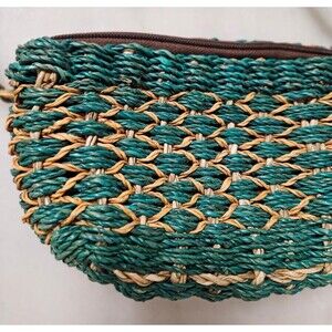 Vintage Yellow Green Wicker Rattan Sewing Bag
