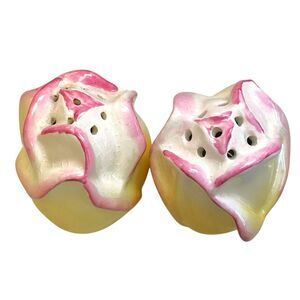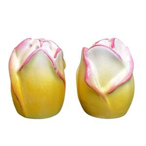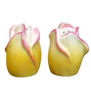 Vintage Yellow & Pink Rose Bud Floral Salt & Pepper Shakers Set Made In England