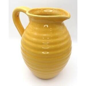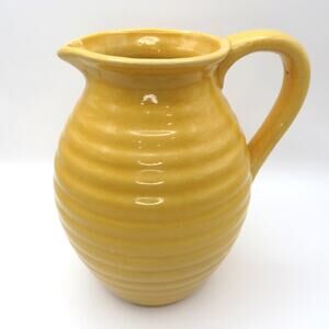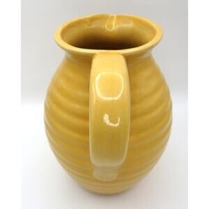 Vintage Yellow Pottery Pitcher Small Ribbed Ceramic Jug Vase Farmhouse Kitchen