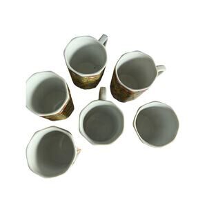Vintage Yellow & Red Octagon, Floral Paisley Tea, Coffee Cup, Set of 6 (RARE)