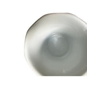Beautiful, dainty and unique. The tea or coffee cups feature an octagonal rim, a yellow floral base with red floral trim near the base. In fantastic shape considering they are a vintage set, however, there are minor areas of discoloration with a few of the cups.