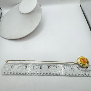 Vintage Yellow Rose Flower Gold Tone Round Locket Necklace 18”