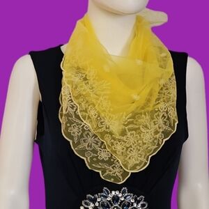 Vintage Yellow Scalloped Floral Chiffon Mantilla Scarf