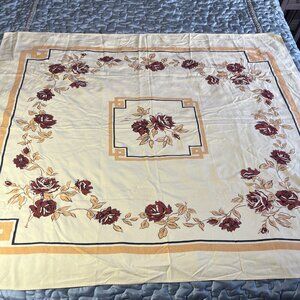 Vintage Yellow Tablecloth with Brown Flowers, 51" x 43"
