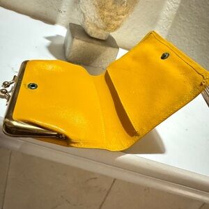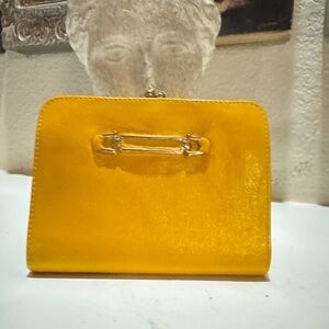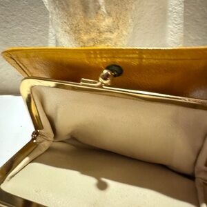 Add a touch of retro elegance to your accessory collection with this charming vintage yellow wallet. Featuring a striking gold tone buckle on the front, this wallet seamlessly blends functionality with timeless style.