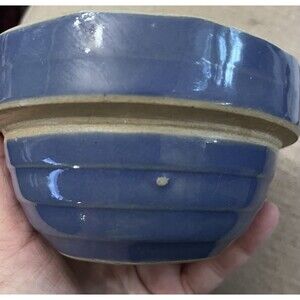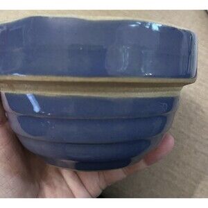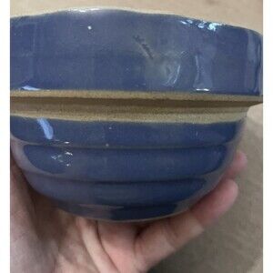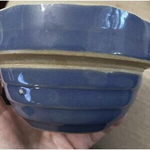 Vintage Yellow Ware Cobalt Blue Nesting Bowl w/ Beehive Sides 5” Wide USA