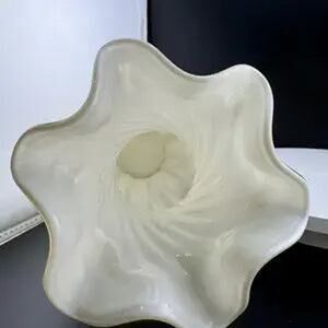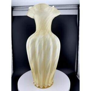 Cheerful yellow and white swirl Fenton vase with ruffle edge. No visible chips or cracks. All-around beautiful piece! Stands 11" tall.