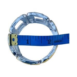 This vintage yellow wide square stretch bracelet is a beautiful piece of fashion jewelry that will add a touch of retro charm to any outfit. The bracelet features a slip-on and off closure, making it easy to wear and adjust to fit your wrist comfortably. It is made of silver tone metal with enamel detailing, giving it a unique and original look. The bracelet is perfect for special occasions such as weddings, graduations, and anniversaries, or as a gift for someone special on a day like Mother's Day, Father's Day, Valentine's Day, or Birthday. Its versatile style makes it suitable for any fashion sense, and its adjustable size ensures a comfortable fit for any wrist size.
