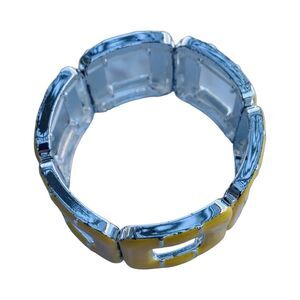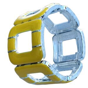 Vintage Yellow Wide Square Stretch Bracelet Silver Tone Enamel