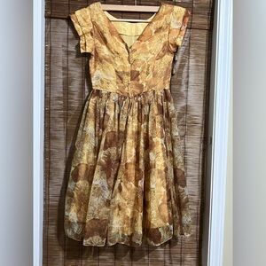 Vintage Yellow and Brown Sundress with Sweetheart Neckline