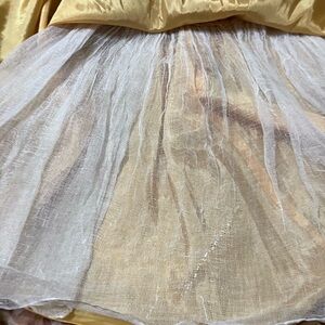 This elegant Vintage sundress features a captivating watercolor floral pattern in shades of yellow and brown. The sleeveless design with a sweetheart neckline and flutter sleeves adds a touch of romance, making it perfect for a wedding guest or cocktail occasion. The light, flowing fabric and midi length create a graceful silhouette that exudes timeless charm.
