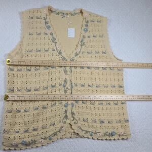 This adorable vintage sweater vest is in excellent condition and ready to add a touch of retro charm to your wardrobe! The size and brand tags have been cut out. Please see the pictures for measurements to ensure a perfect fit. Based on the measurements, it would fit like a large. It features a boxy fit, perfect for layering. The front is beautifully crocheted with delicate, embroidered flowers. The open knit back adds a unique and stylish touch. This vest is perfect for achieving that popular Grandmacore look or adding a cozycore vibe to your outfits. Get ready to turn heads with this unique and timeless piece!