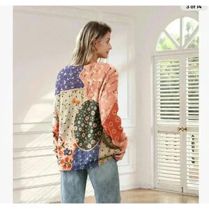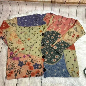 Vintage Yesno Floral V-Neck Cardigan Wool Blend Size M READ