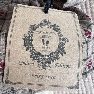 Still has original hang tag attached reading: Yesterday's Child, The Doll Collection, Limited Edition "Mary Anne"