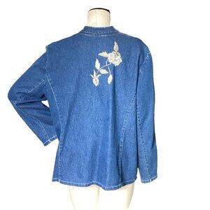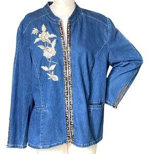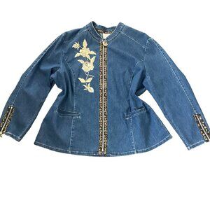 Vintage Yi Lin Oriental Embroidered Denim Zip Jacket Plus Sz 1X Blue #200N