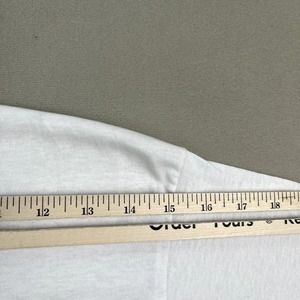 Single stitch. Size S, fits slim. Check measurements for fit. Good condition, faint mark at hem.